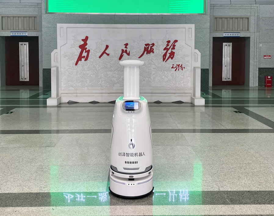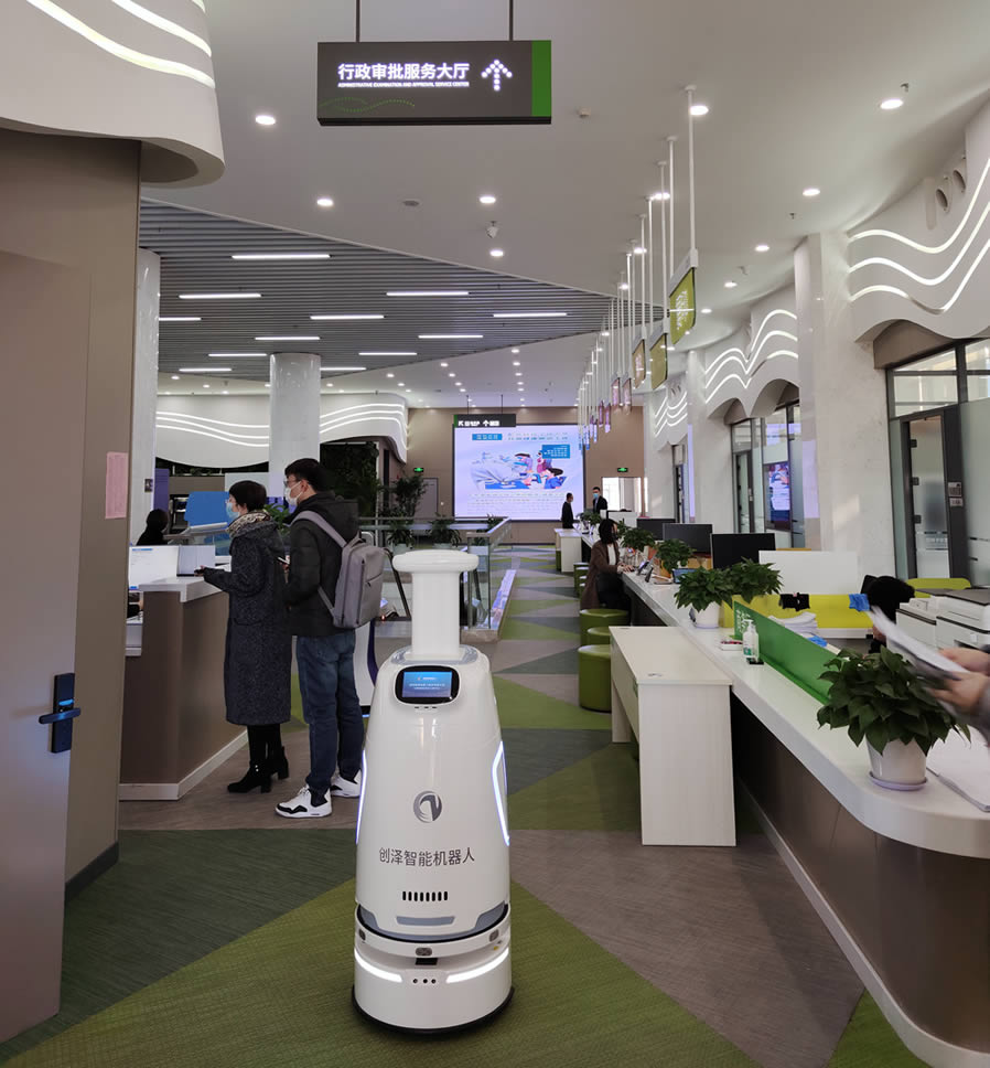 為進(jìn)一步提升政務(wù)服務(wù)能力和水平,營造方便企業(yè)群眾辦事的溫馨環(huán)境,近日,政務(wù)服務(wù)大廳迎來創(chuàng)澤智能消毒機(jī)器人,為人民群眾提供一個(gè)安全保障的辦事環(huán)境。