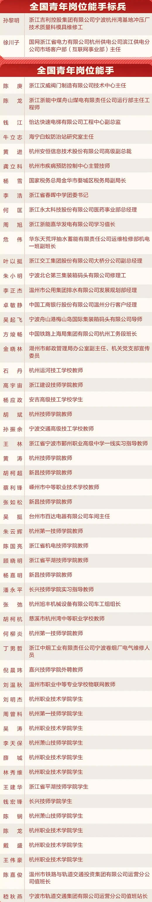 當前位置:首頁 > 黨群建設 > 崗位能手 > 浙江省第20屆全國青年崗位能手名單
